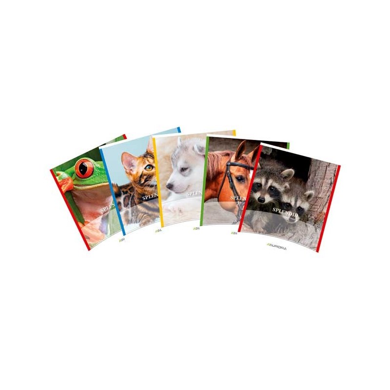 Caiet A5, 48 file - 80g/mp, liniat stanga, coperta imagini cu animale, AURORA Splendid - dictando