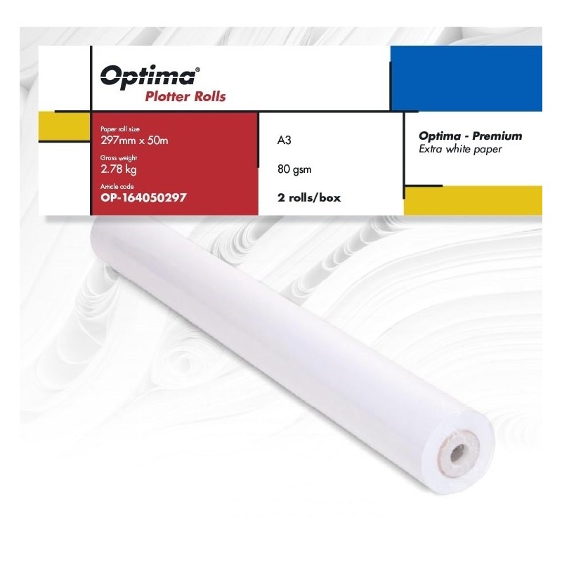 Rola plotter A3, 80gr, 297mm x 50m, 2 role/cutie, Optima - Premium