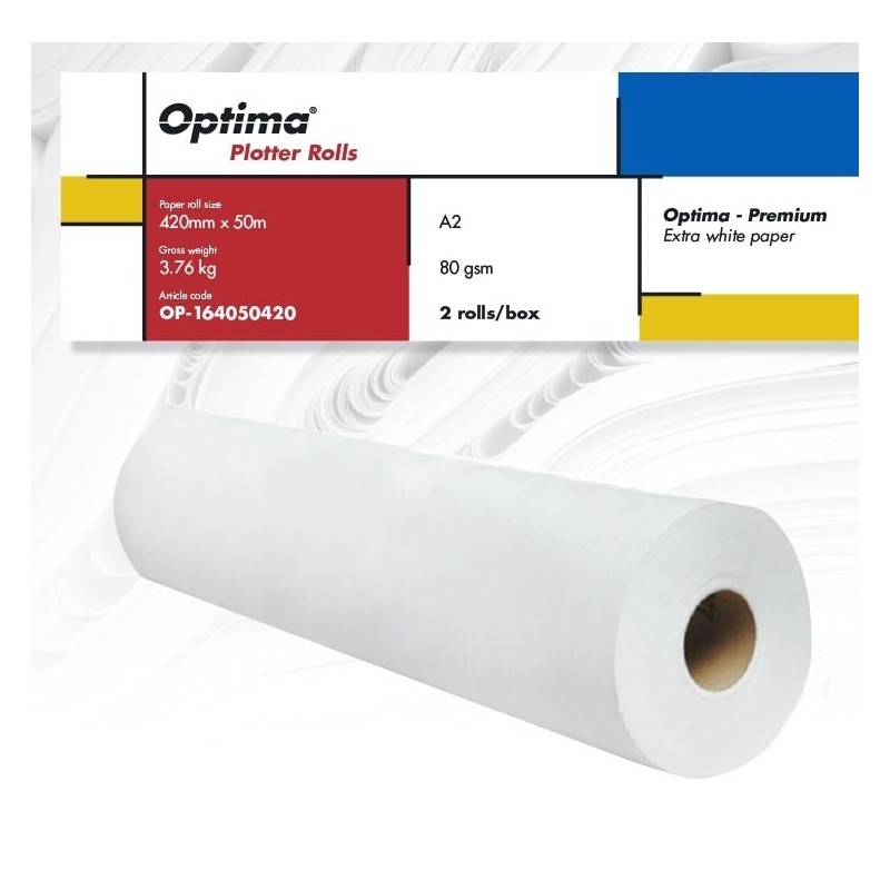 Rola plotter A2, 80gr, 420mm x 50m, 2 role/cutie, Optima - Premium