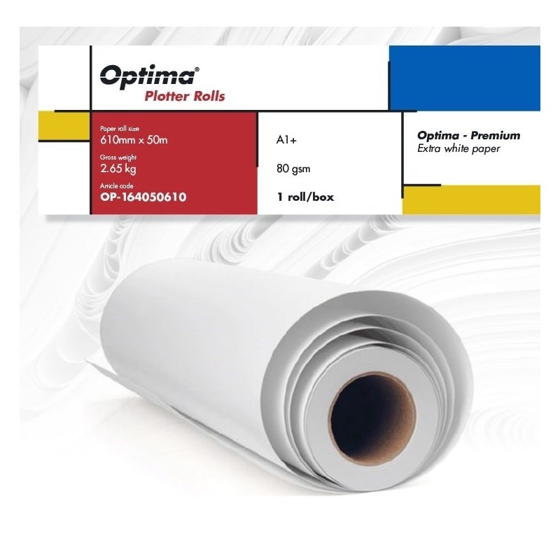 Rola plotter A1+, 80gr, 610mm x 50m, Optima - Premium