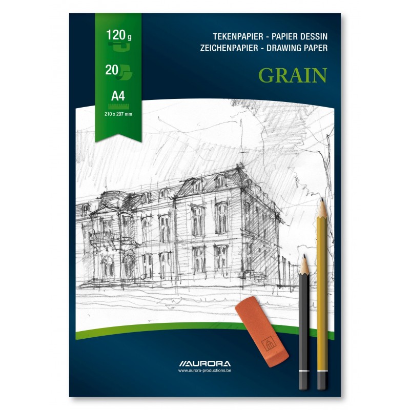 Bloc desen A4, 20 file - 120g/mp, AURORA Grain- hartie alba