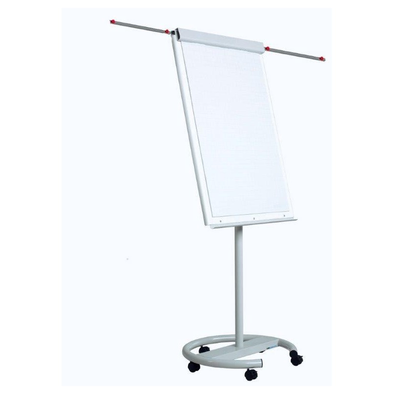 Flipchartul are o clema pentru prindere rapida a hartiei, iar pe panoul magnetic se scrie cu markere speciale si se sterge cu burete uscat.