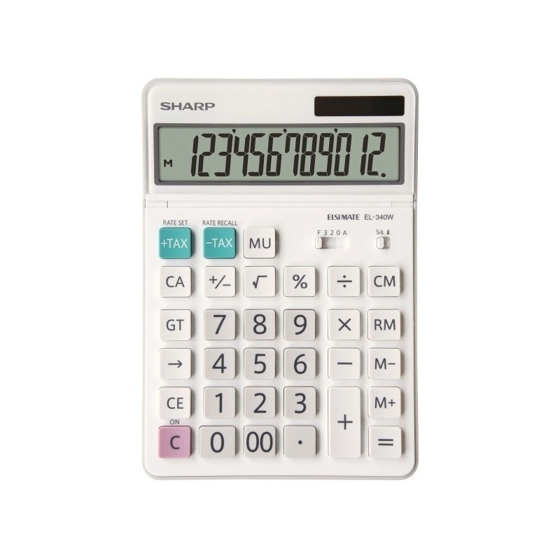 Calculator de birou, 12 digits, 189 x 127 x 18 mm, dual power, ecran rabatabil, SHARP EL-340W - alb
