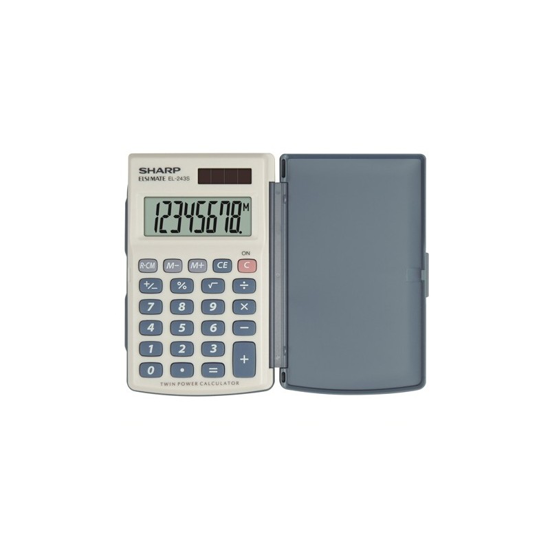 Calculator de buzunar, 8 digits, 105 x 64 x 11 mm, dual power, capac plastic, SHARP EL-243S - gri