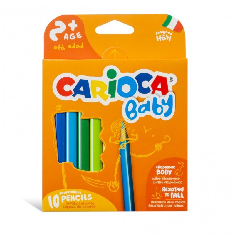 Creioane colorate CARIOCA Baby 2+, triunghiulare, 10 culori/cutie