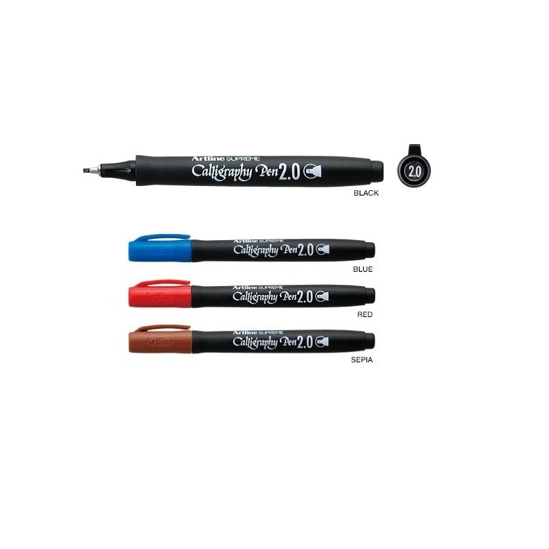 Va propunem un marker caligrafie Artline Calligraphy! Are un varf din fibra de polyester, cu o grosime de scriere de 2 mm.
