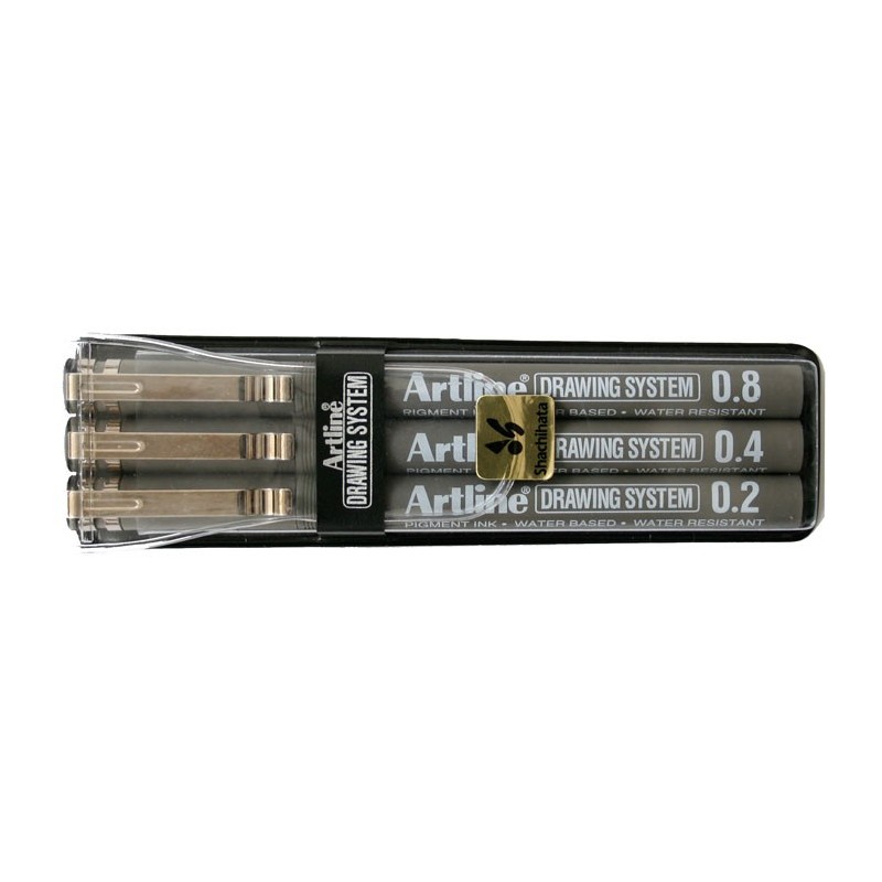 Marker pentru desen tehnic ARTLINE, varf fetru (0.2/0.4/0.8mm), 3 buc/set - negru