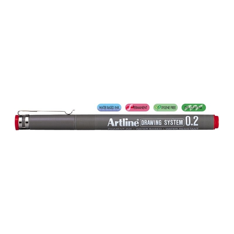Marker pentru desen tehnic ARTLINE, varf fetru 0.2mm - rosu