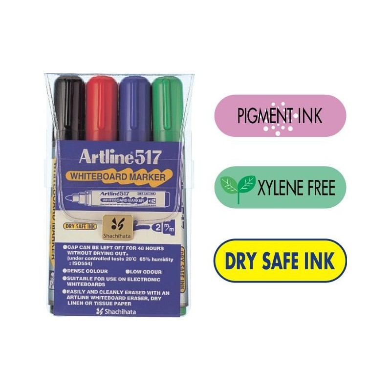 Marker pentru tabla de scris ARTLINE 517 - Dry safe ink, varf rotund 2.0mm, 4 culori/set