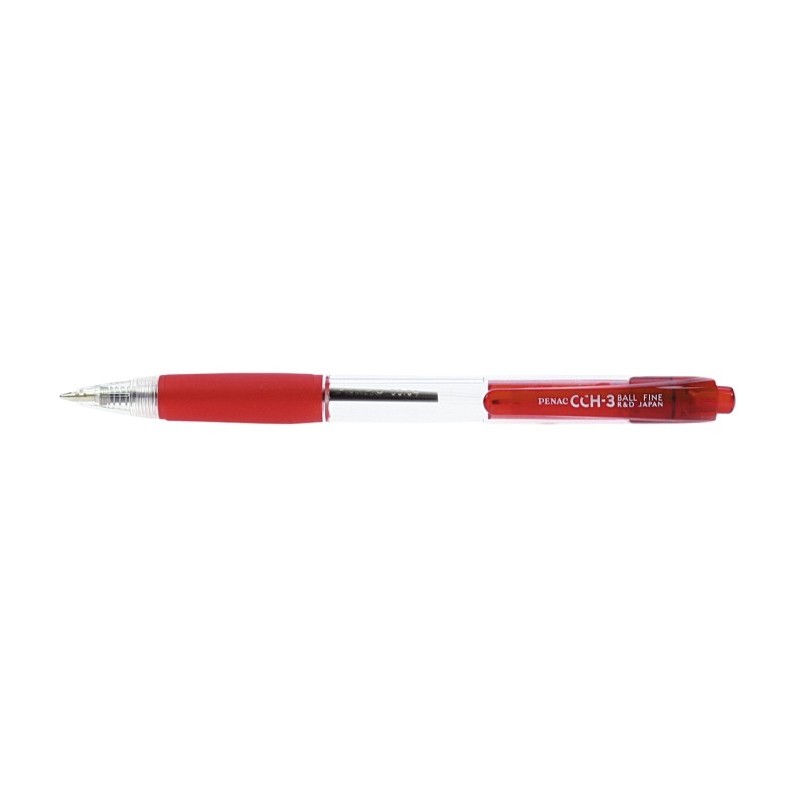 Pix PENAC CCH-3, cu mecanism, rubber grip, 0.7mm, corp transparent - scriere rosie