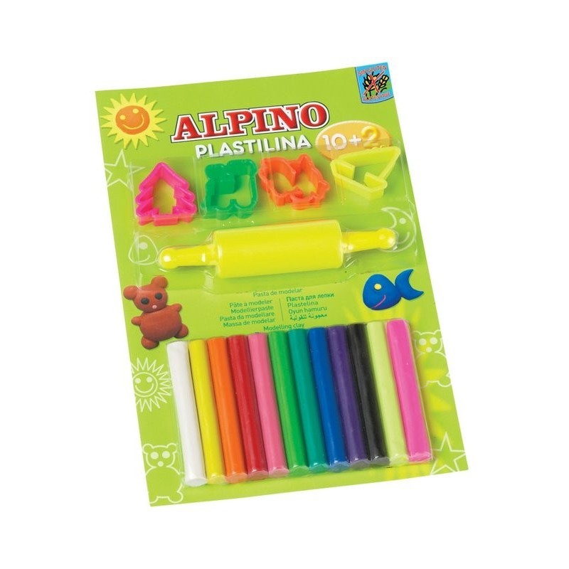 Kit 10 +2 culori x 17gr plastilina + 4 forme modelaj + roller, in blister, ALPINO