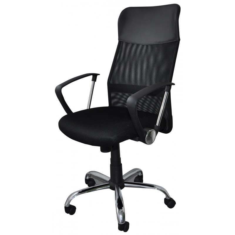 Scaun de birou, brate metalice, rotile, mesh textil/piele ecologica, Office Products Corfu - negru