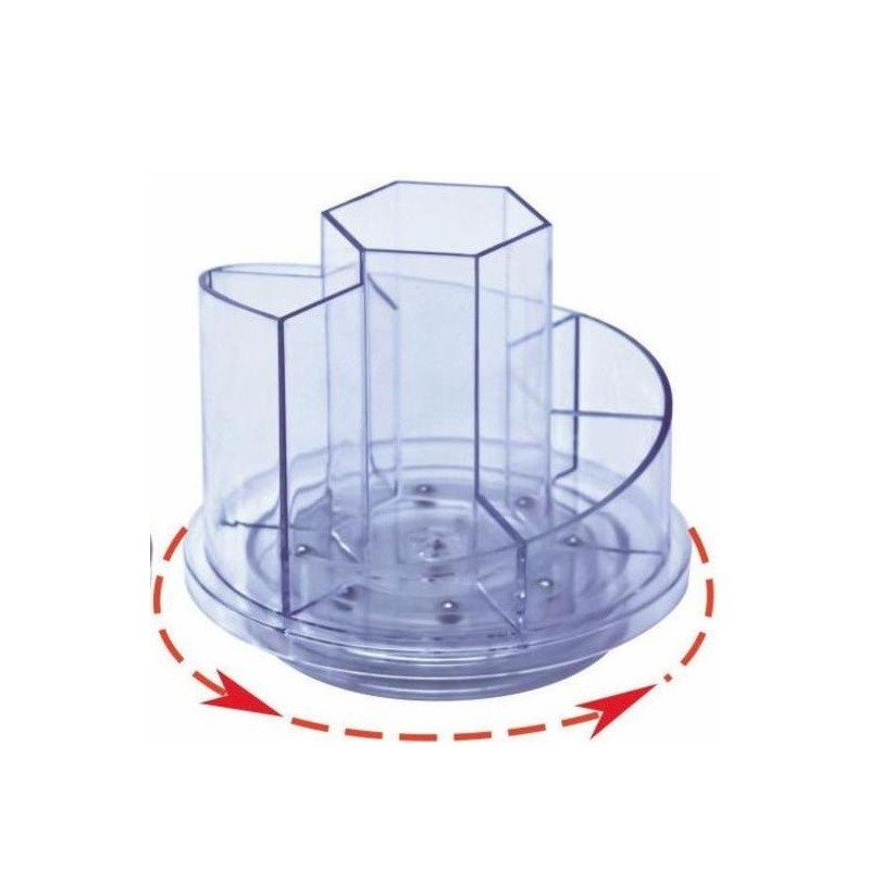 Suport plastic pentru accesorii de birou, rotativ, 7 compartimente, KEJEA - transparent