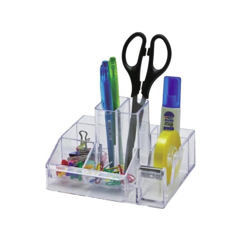 Suport plastic pentru accesorii de birou, 8 compartimente, 148 x 87mm, KEJEA - transparent
