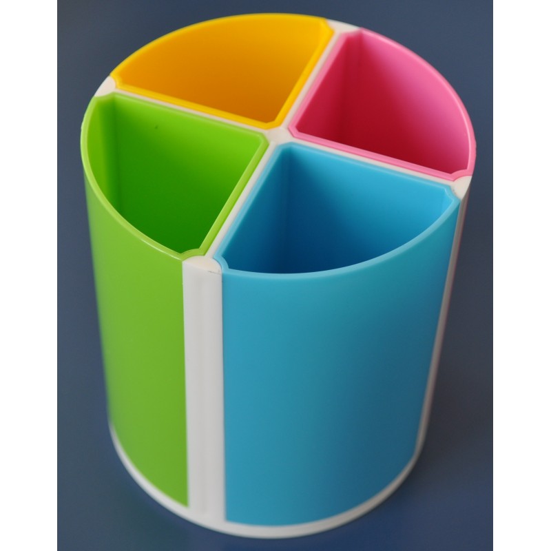 Suport plastic pentru instrumente de scris, cilindric, 4 compartimente , KEJEA - culori asortate
