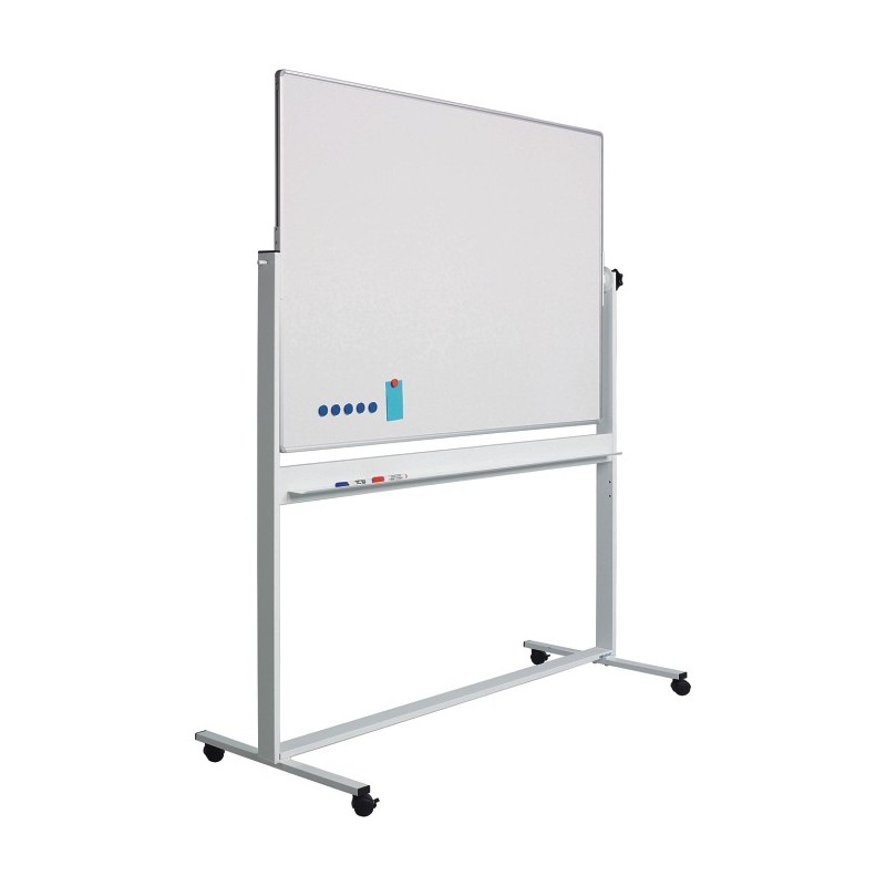 Tabla alba magnetica, dubla fata, rotativa, 100 x 200 cm, pe stand mobil, profil aluminiu RC, SMIT
