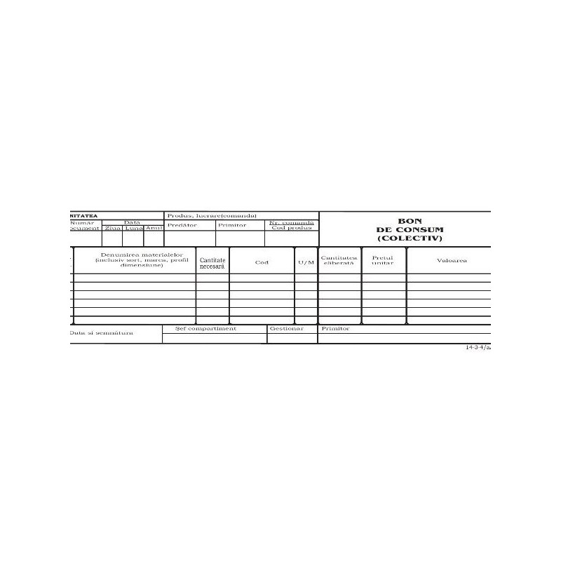 Bon consum colectiv , format 1/2 A4 , 100 coli/carnet