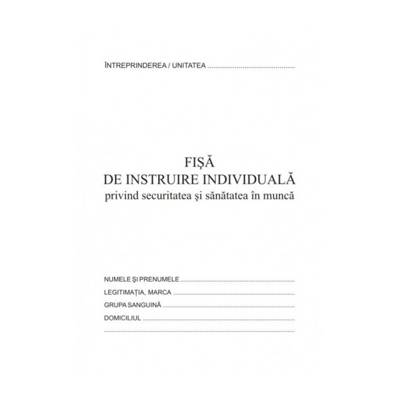 Fisa instruire individuala pentru securitatea si sanatatea in munca.